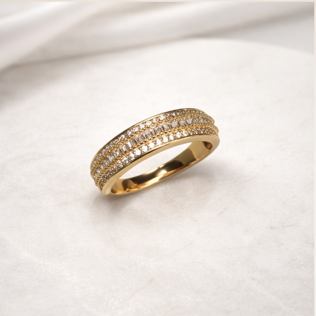 Anel 3 fileiras cravejadas
