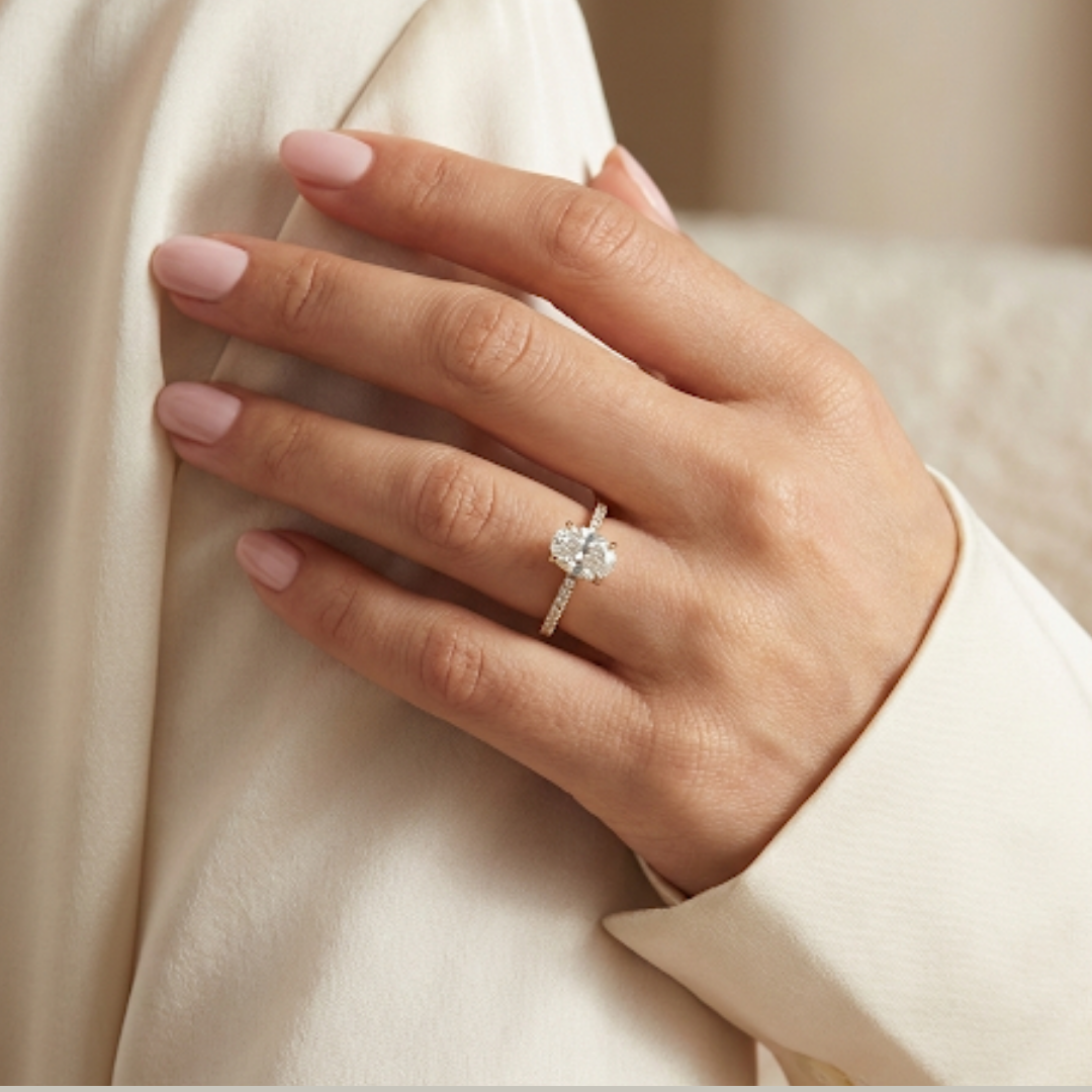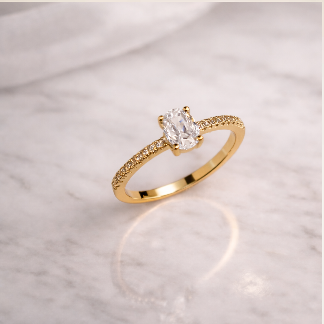 Anel Oval meio Aro Cravejado