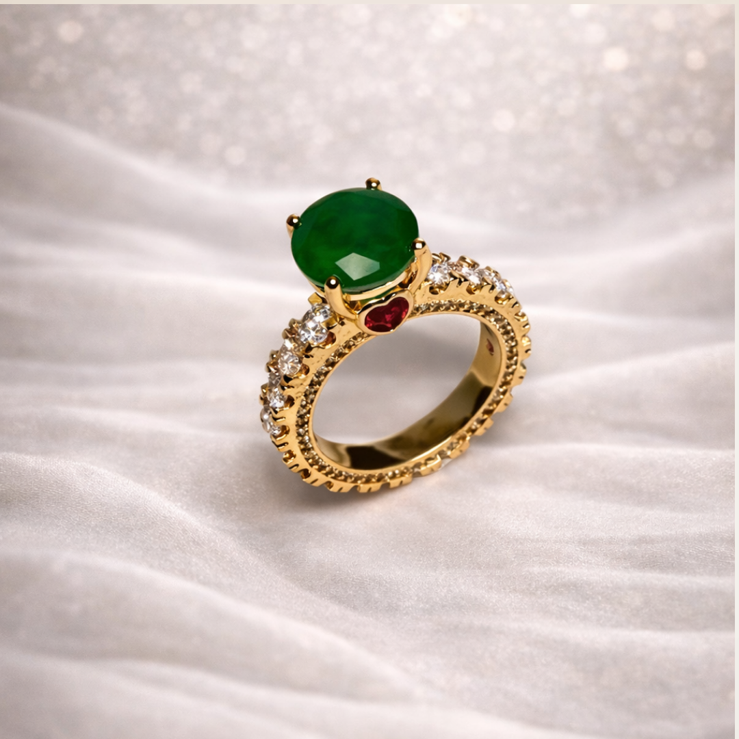 Anel Solitário Verde Aro 16 Cravejado