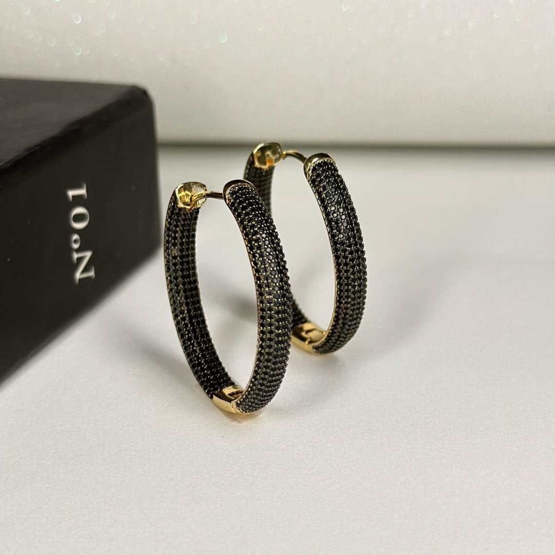Brinco banho ouro 18k argola Cravejada de Zircônias pretas