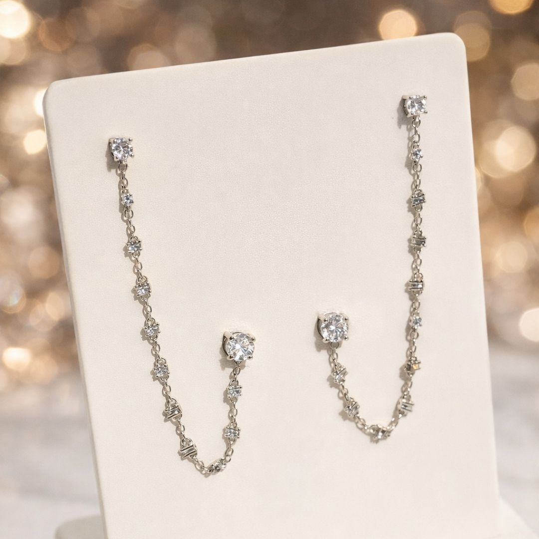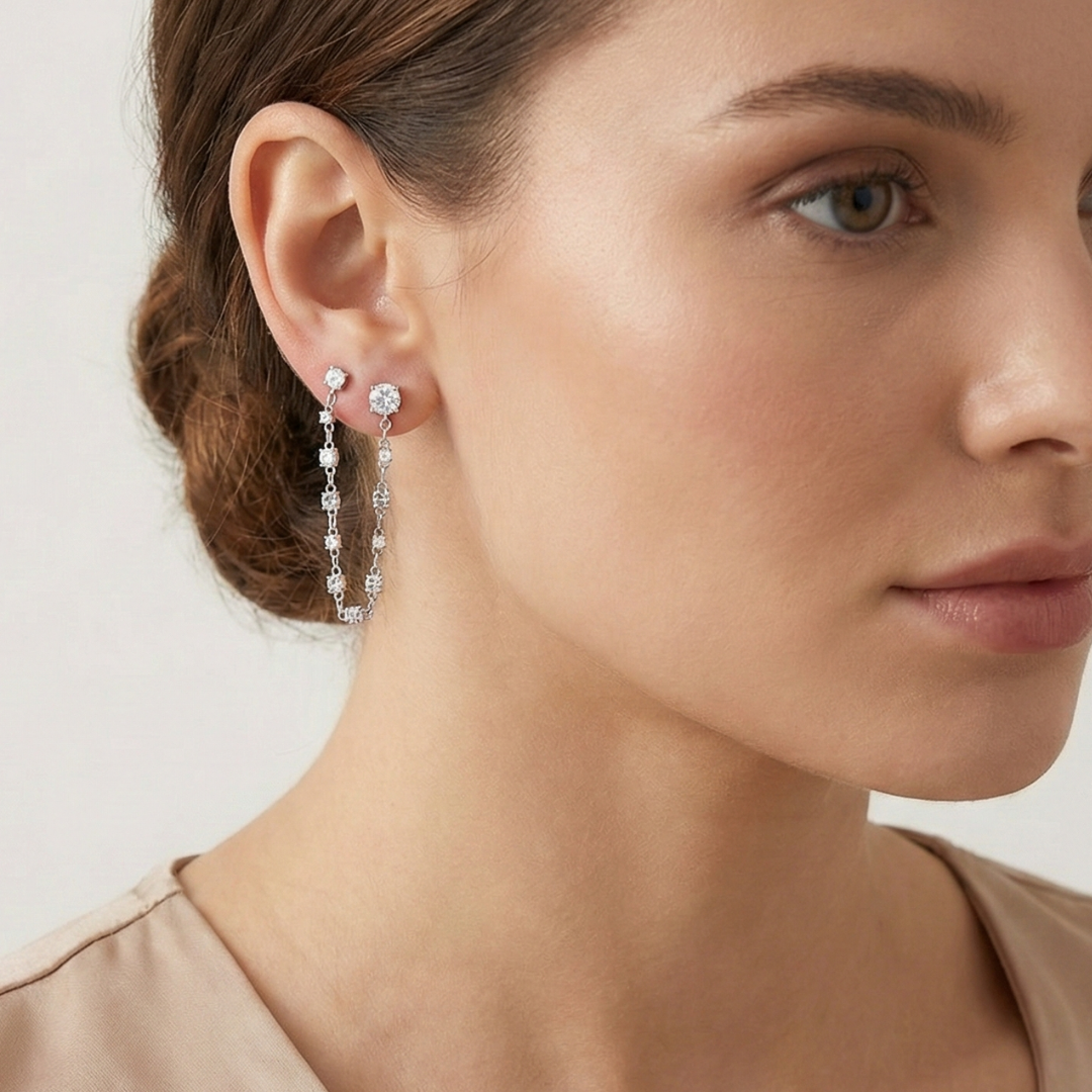 Brinco Duplo Cristal Correntinha