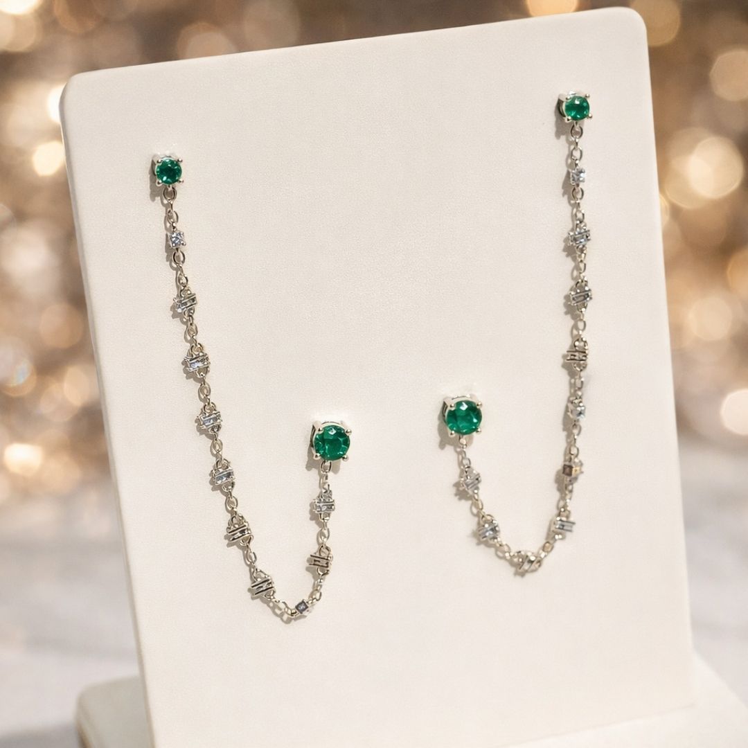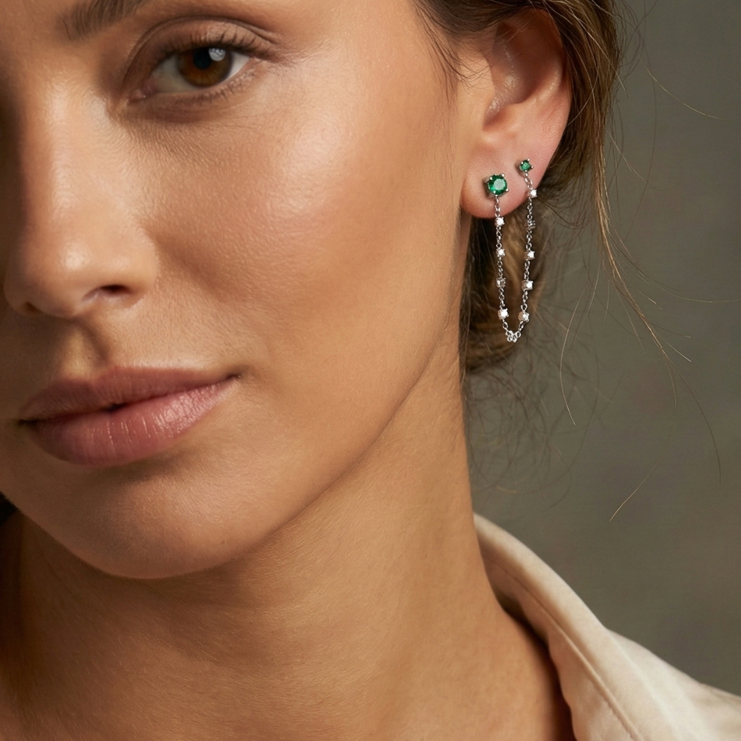 Brinco Duplo Verde Correntinha