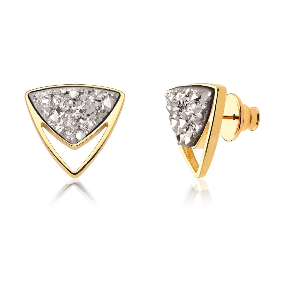 Brinco Equilíbrio com Drusa Platina em Banho Ouro 18K promove o equilíbrio emocional, fortalece a intuição e a ter mais clareza do Pensamento.