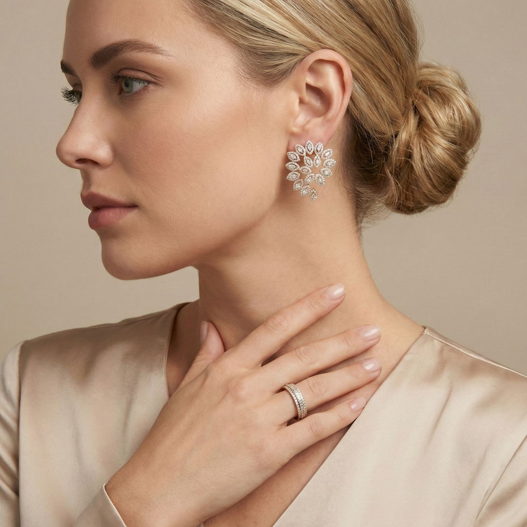 • Cravejado Navetes e Micro Zircônias cor Cristal
