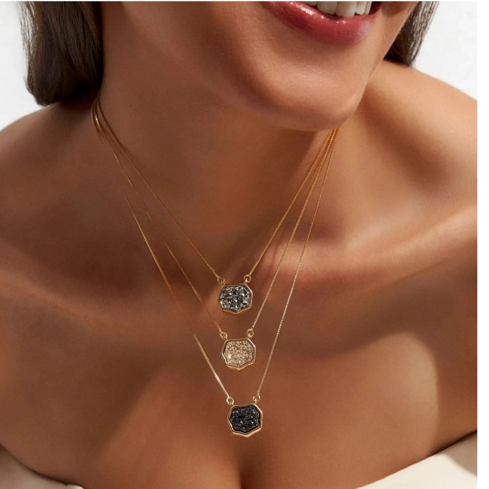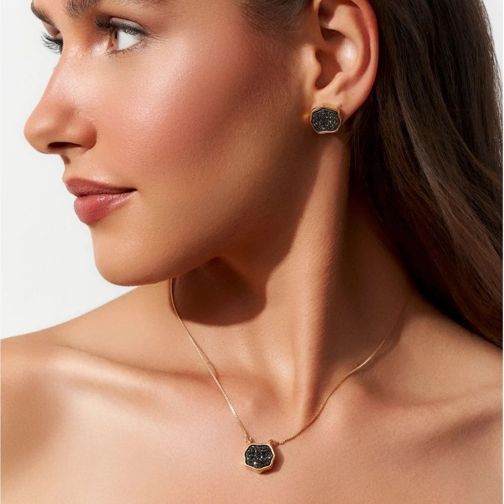 Use o Colar Sita com Drusa Negra em  Banho de Ouro 18k para renovar a sua energia e equilíbrio emocional.