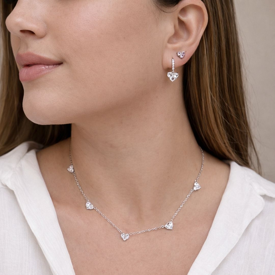 • Colar com 5 corações com Pedra Cristal;