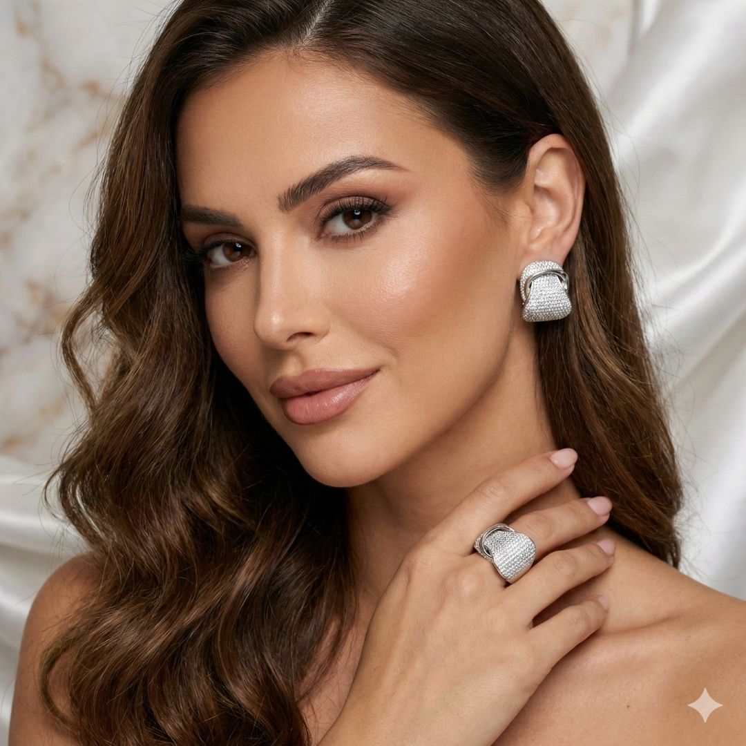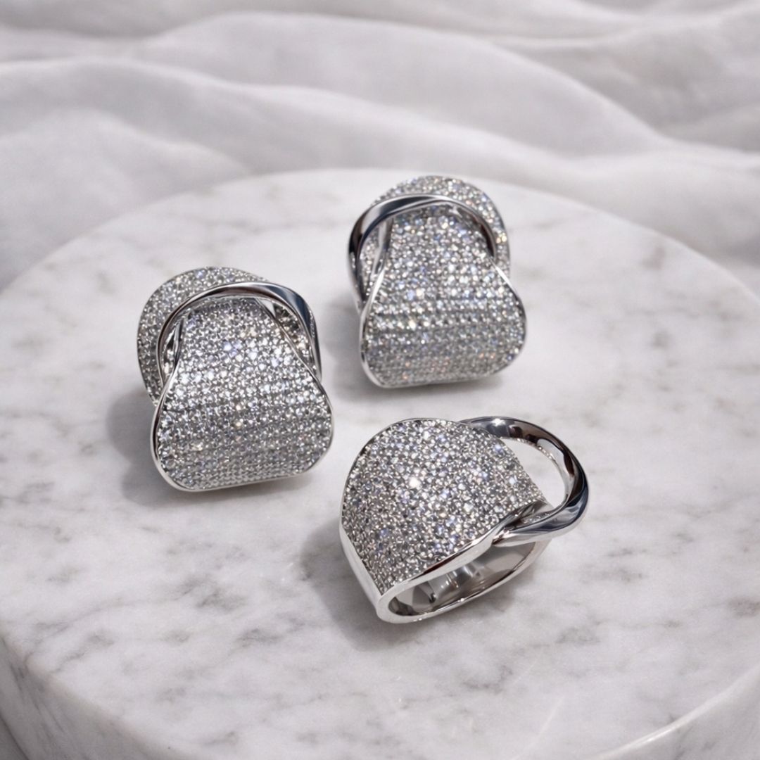 Conjunto Anel Aro 18 e Brinco Cravejado de Luxo
