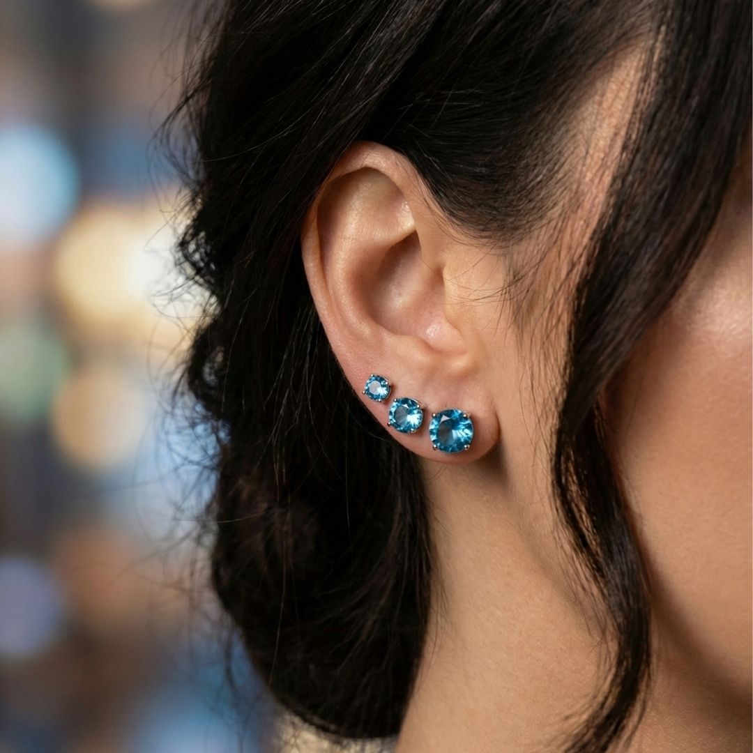 Trio Ponto de luz azul Tifany Ródio Branco